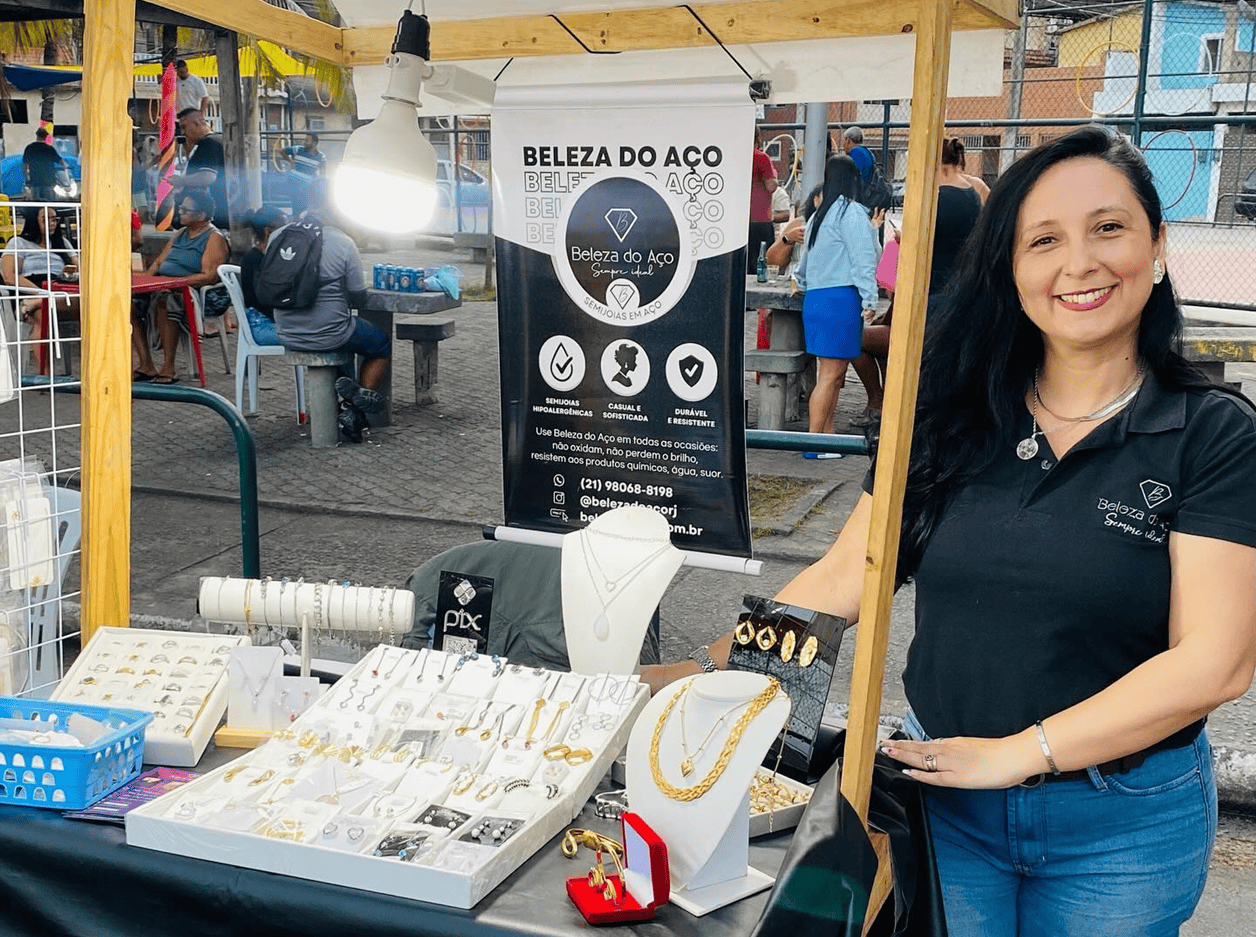 Levar uma alternativa de beleza com peças de qualidade e custo acessível, especialmente para quem tem alergia a bijuterias, é o propósito do negócio de Cynthia Pessôa, 48 anos. Moradora da comunidade do Batan, em Realengo, Zona Oeste do Rio de Janeiro, ela fundou a Beleza de Aço (@belezadeacorj) e comercializa acessórios como brincos, alianças, cordões, braceletes e pulseiras feitos de aço inox.