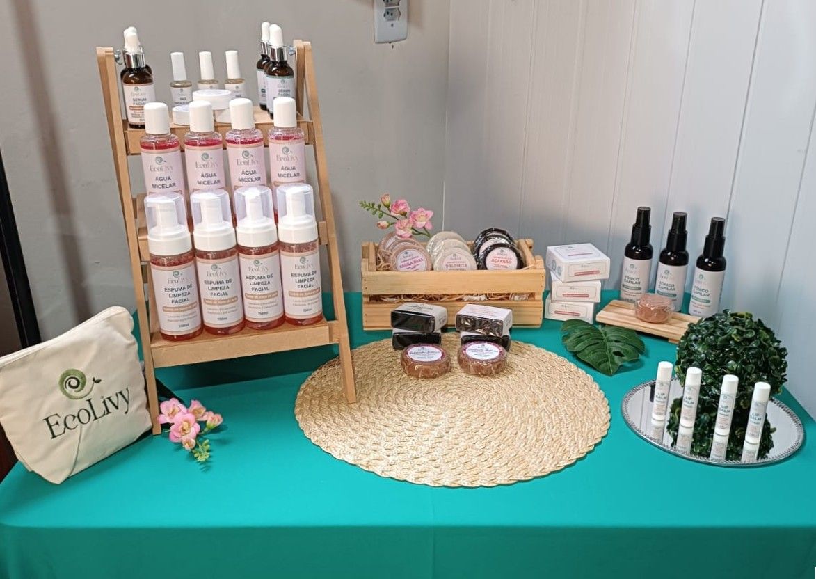 Para ela, o principal aprendizado obtido no curso esteve relacionado à precificação, e os três meses de mentoria foram fundamentais para o processo de estruturação do negócio, o EcoLivy Cosméticos Naturais. A dedicação de Elen foi decisiva para o avanço do empreendimento. Logo após as aulas presenciais, investiu em cursos de cosmetologia natural. Ainda acompanhada pela mentoria da Besouro, passou a produzir e testar seus primeiros cosméticos para atender às demandas da própria família. Três meses depois, já estava comercializando os produtos artesanais. “Fui fazer curso de cosmetologia natural e aprendi a formular. Comecei fazendo produtos para a pele acneica do meu marido, protetor para lábios ressecados para mim e minha filha. Ali nasceram os primeiros produtos naturais feitos por mim. Vi que as fórmulas funcionaram e não parei mais”, relata.