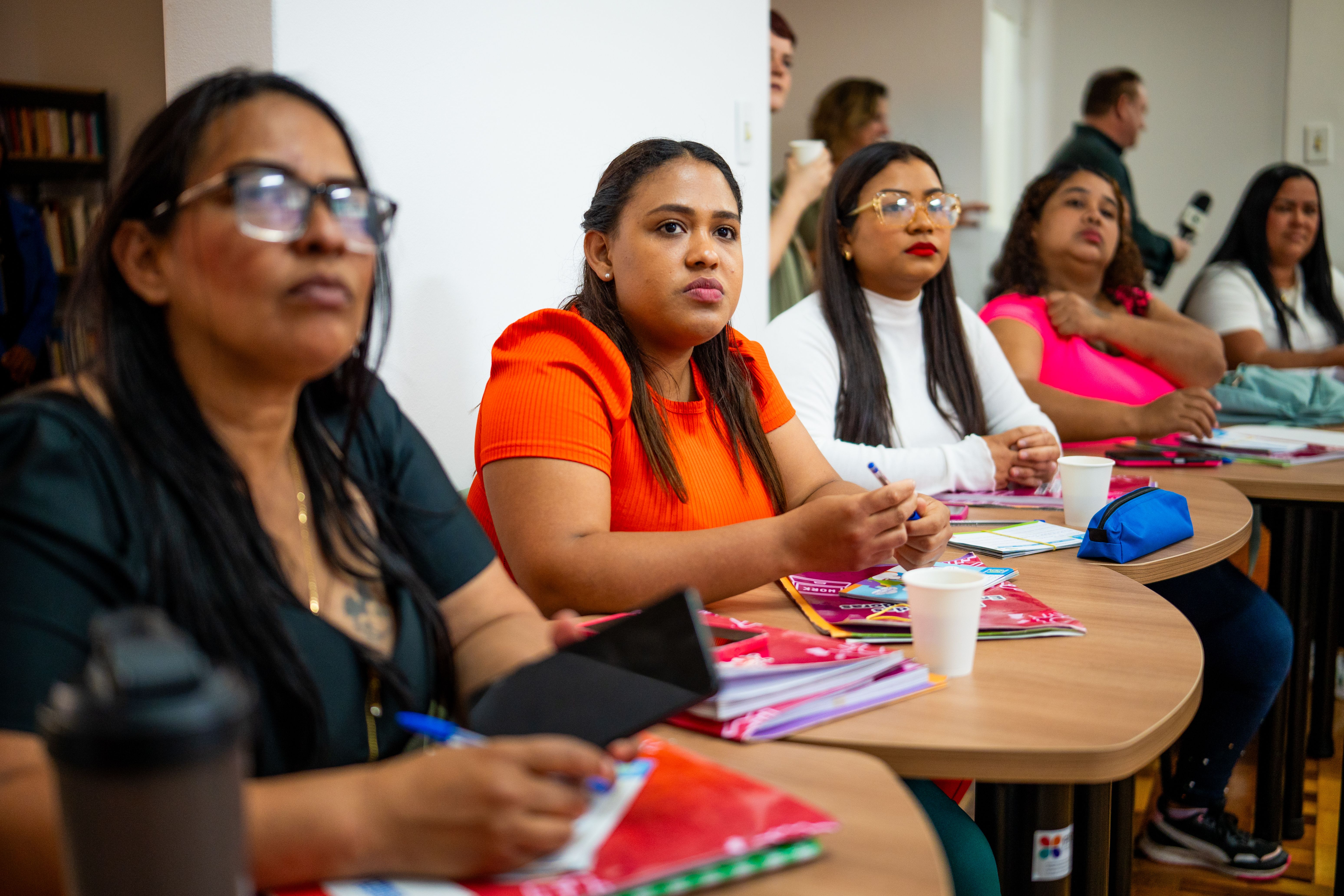 A maioria das alunas tem entre 25 e 40 anos. Embora tenham chegado ao Brasil em períodos diferentes, as participantes da turma – composta exclusivamente por mulheres – compartilham trajetórias marcadas por desafios semelhantes. Vindas de um país afetado por uma grave crise econômica, deixaram sua terra em busca de novas perspectivas. Já em território brasileiro, muitas enfrentaram condições precárias de moradia, vivendo em barracas próximas à fronteira antes de serem acolhidas por ações de ajuda humanitária que as conduziram ao Rio Grande do Sul, onde receberam apoio de entidades sociais como a SMRJ.